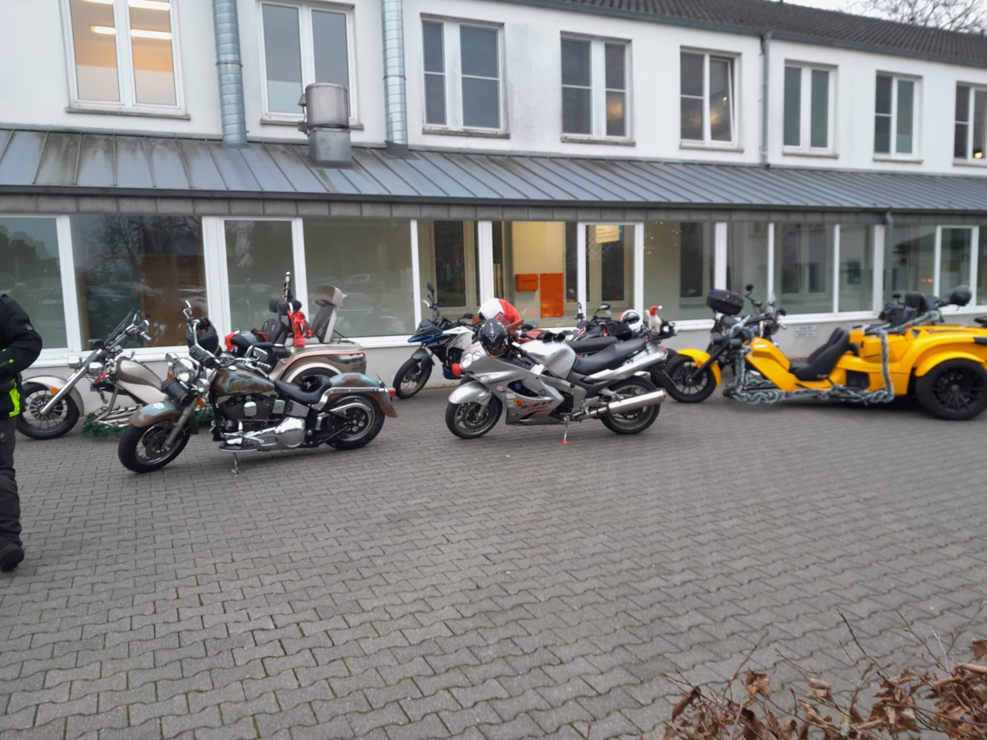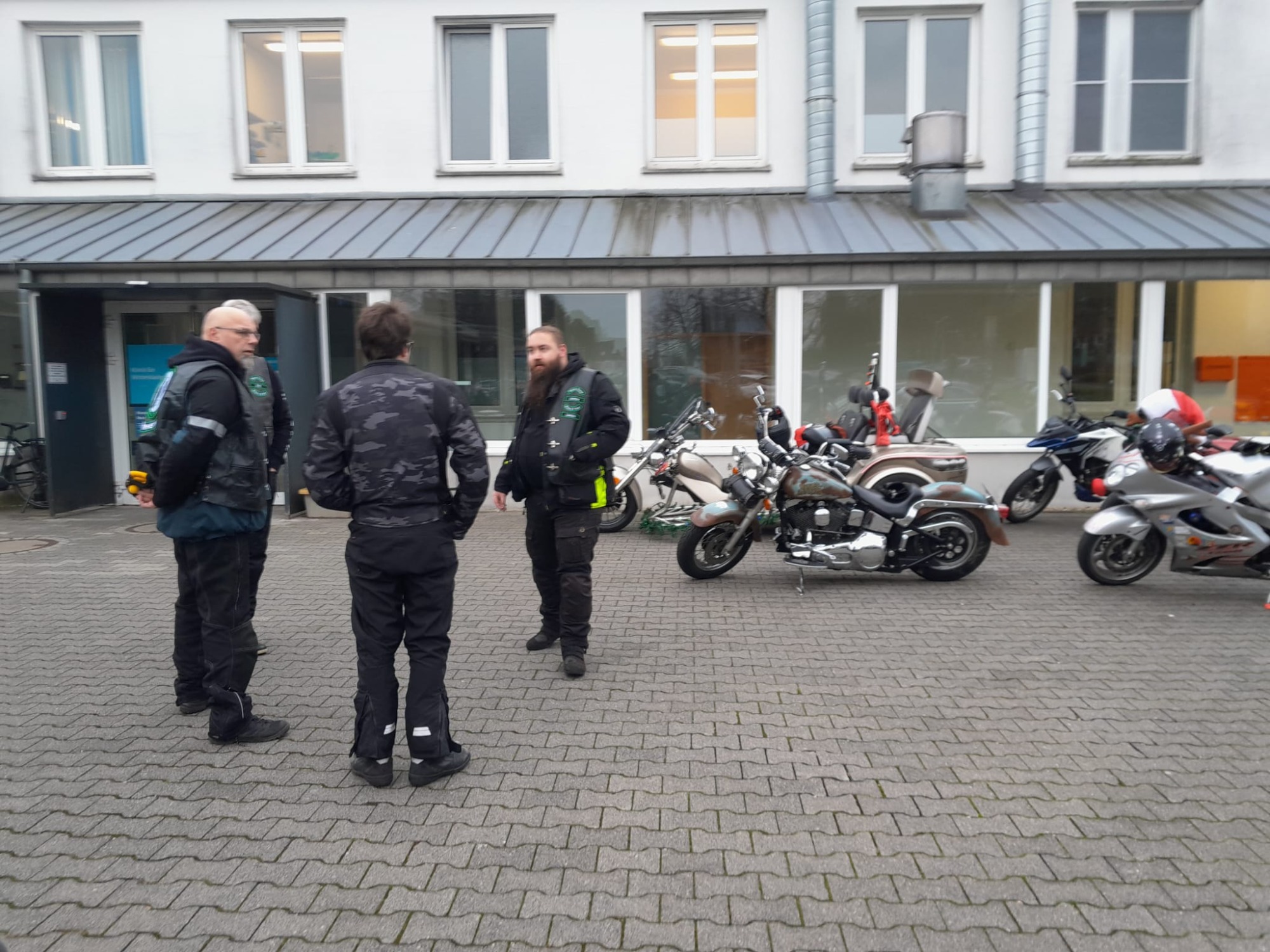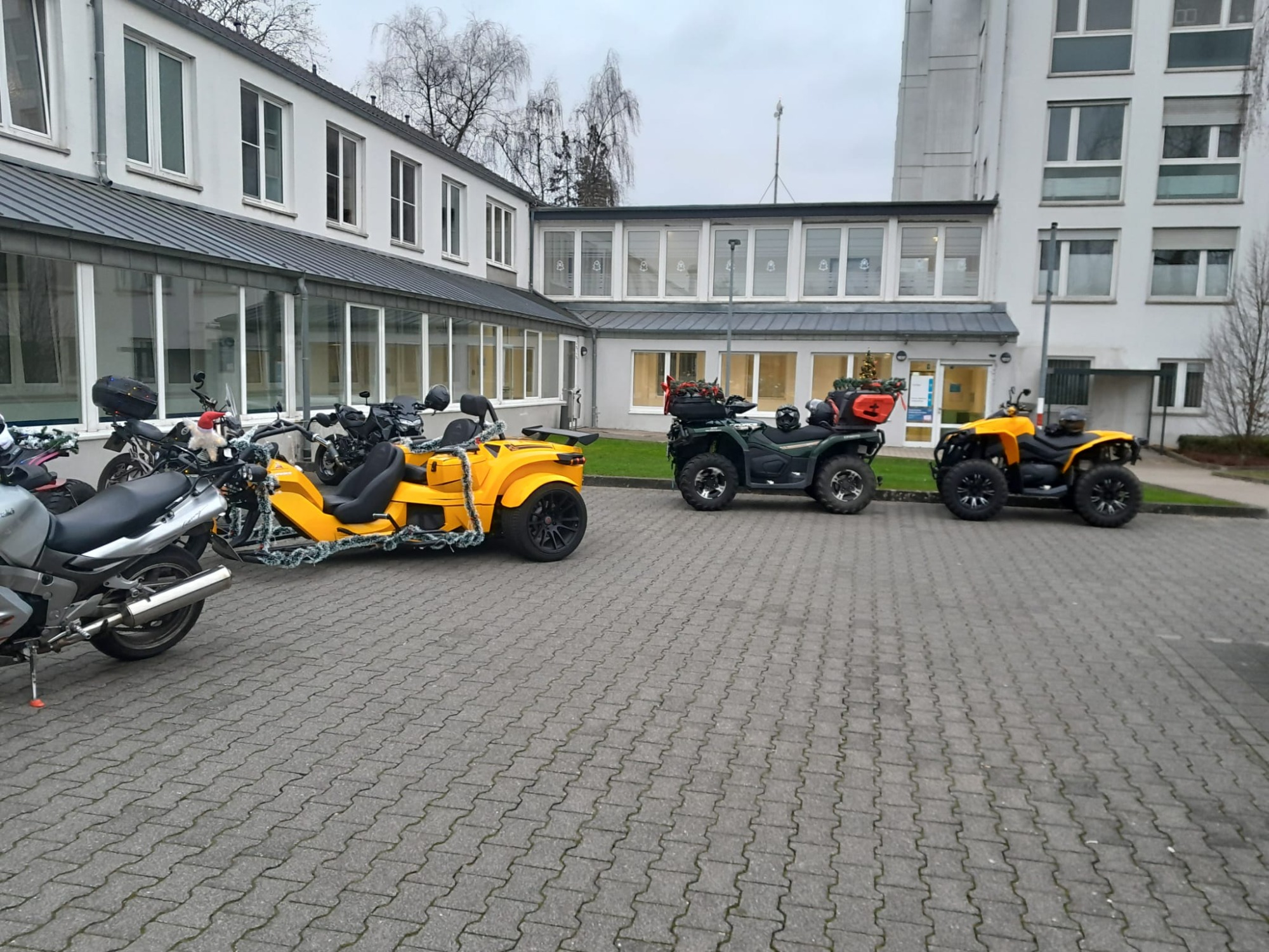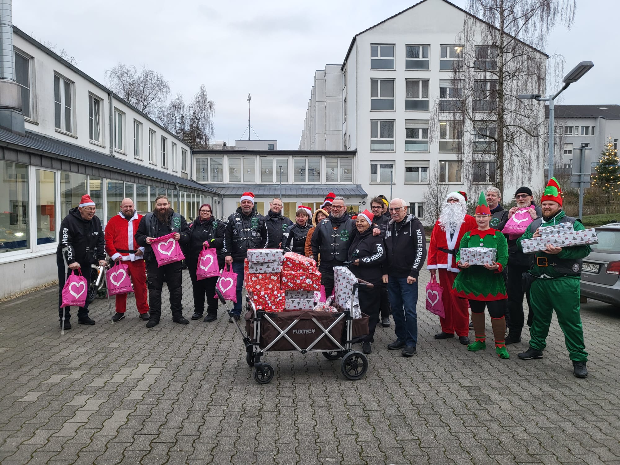 Mit dem Weihnachtsmann und auf dem Anlass entsprechend geschmückten Fahrzeugen fuhren wir zum Krankenhaus und überreichten den Kindern dort festlich verpackte Geschenke.